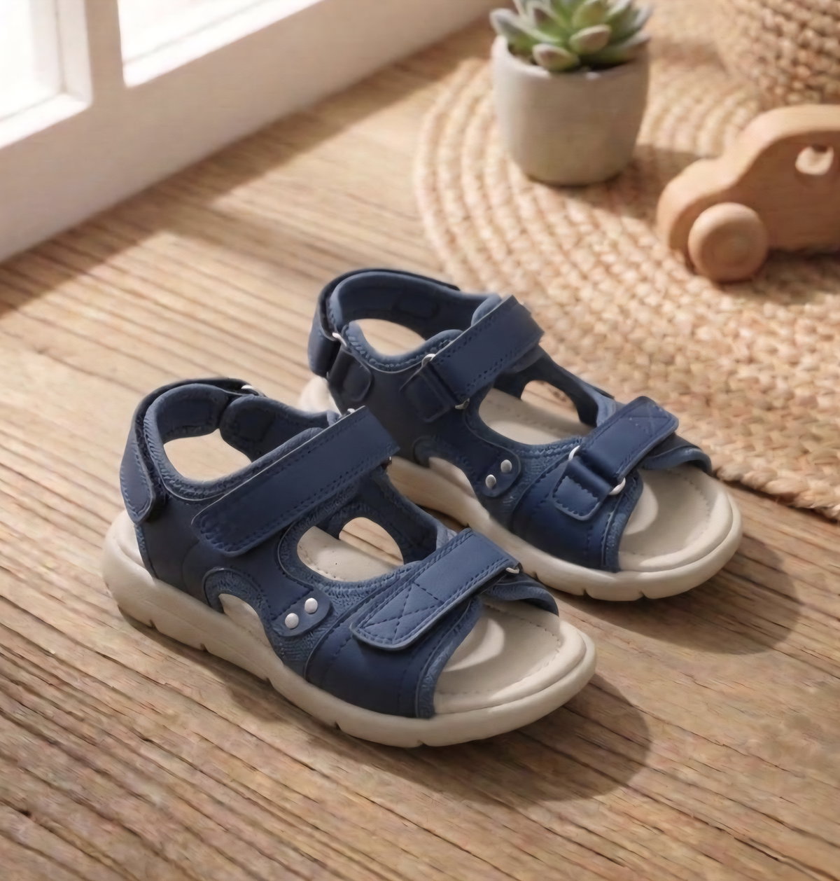 Sandalia unisex confeccionada en en eco cuero y tela super reforzada !
